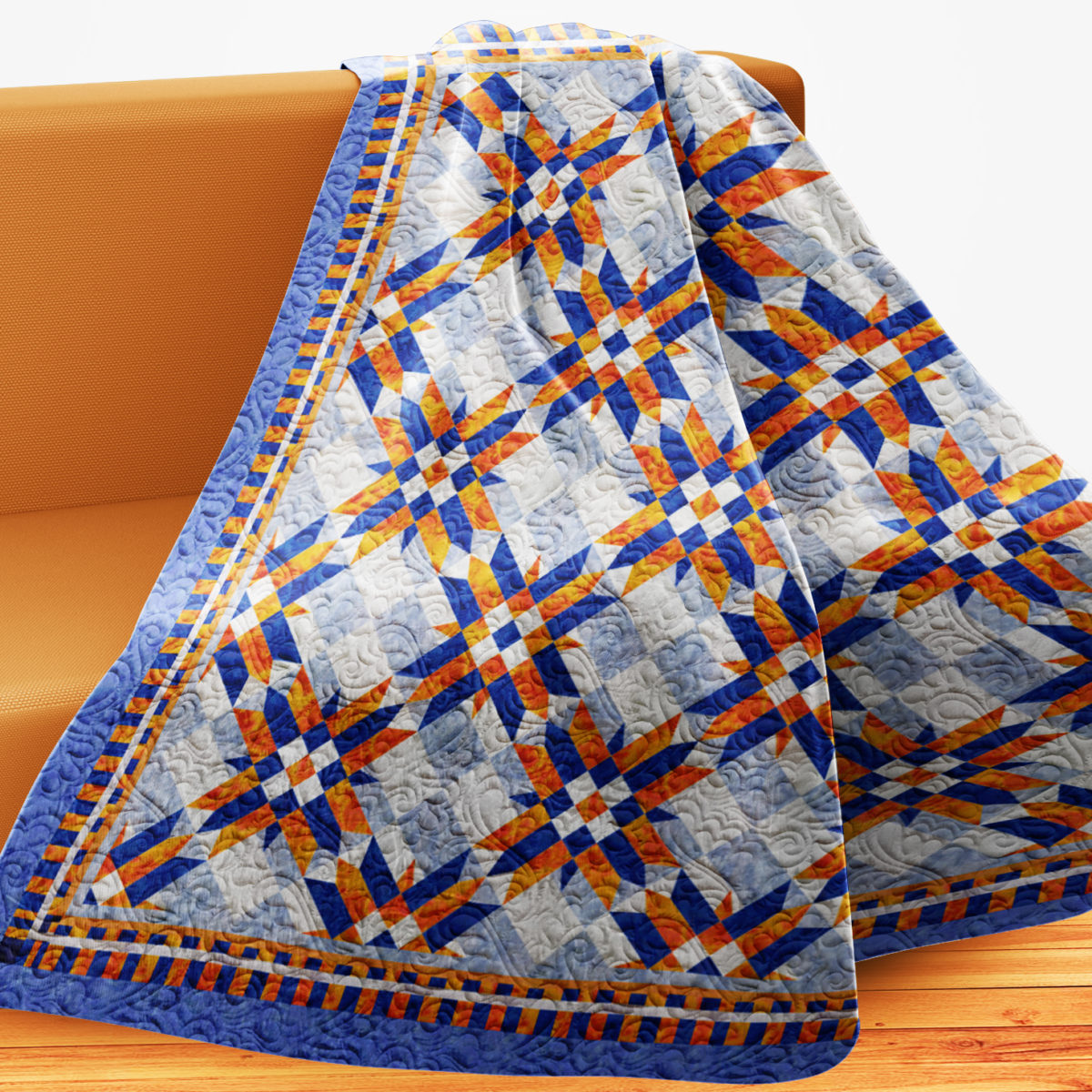 This is a Digital Download of the quilt photos, yardage and patch count requirements ( by brand when possible, the actual patch size templates, and very basic instructions for changing the size of this single quilt pattern to accommodate all bed sizes from Twin – King sizes. You can also create just a few of the blocks for a simple couch throw, table centerpiece, or even a crib quilt.