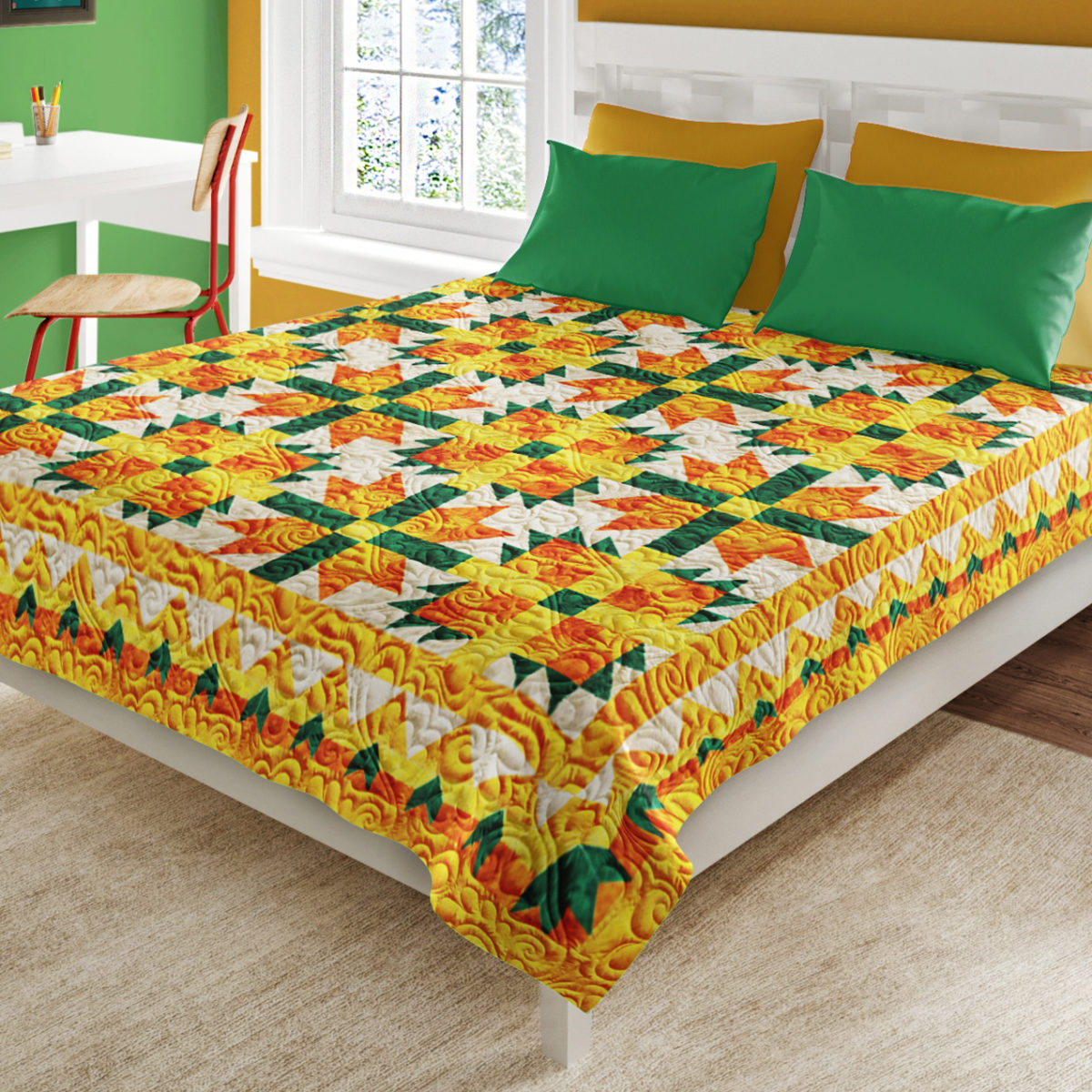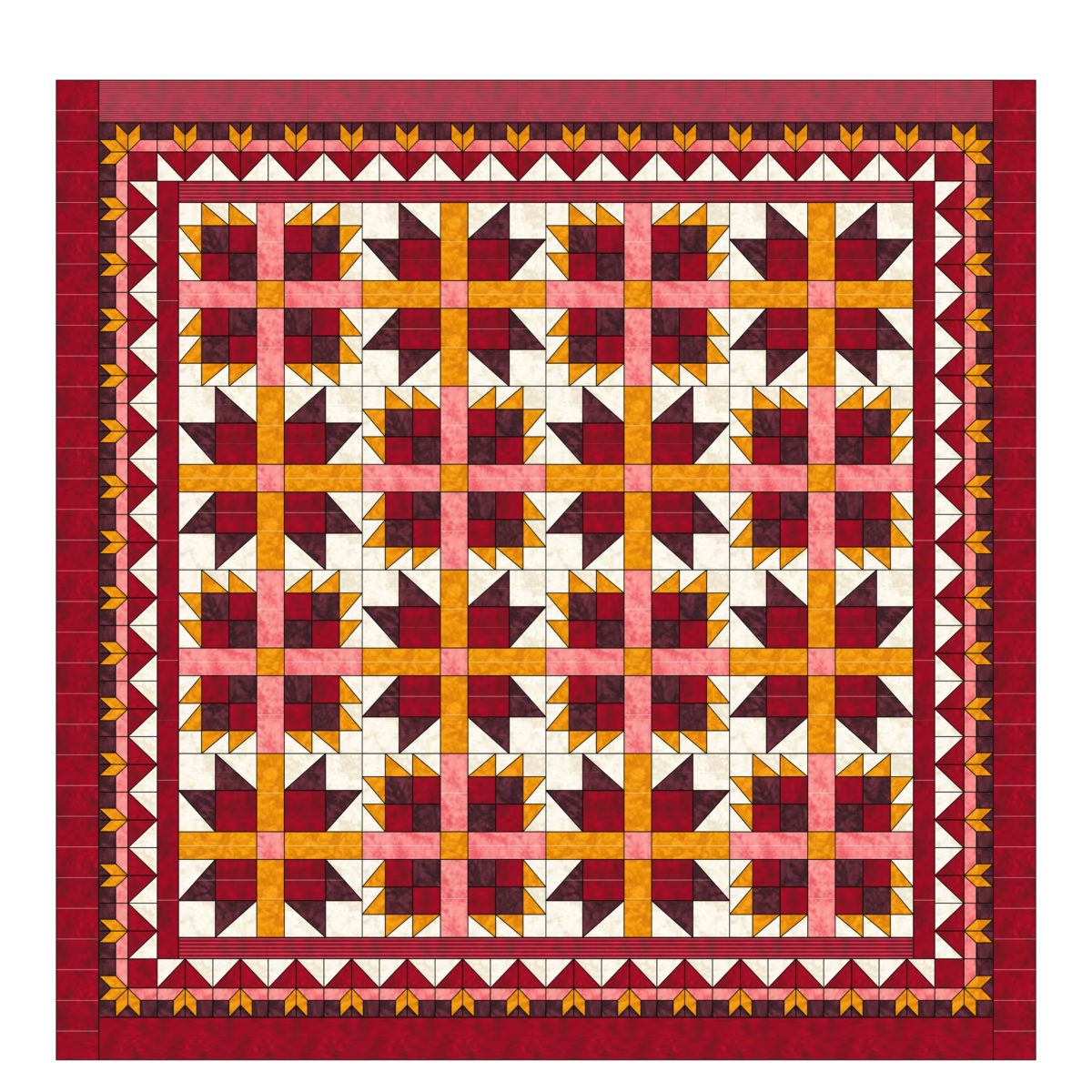 We know you will have fun sewing this simple quilting pattern. It is striking, and is very easy to create by even a novice patchwork enthusiast.