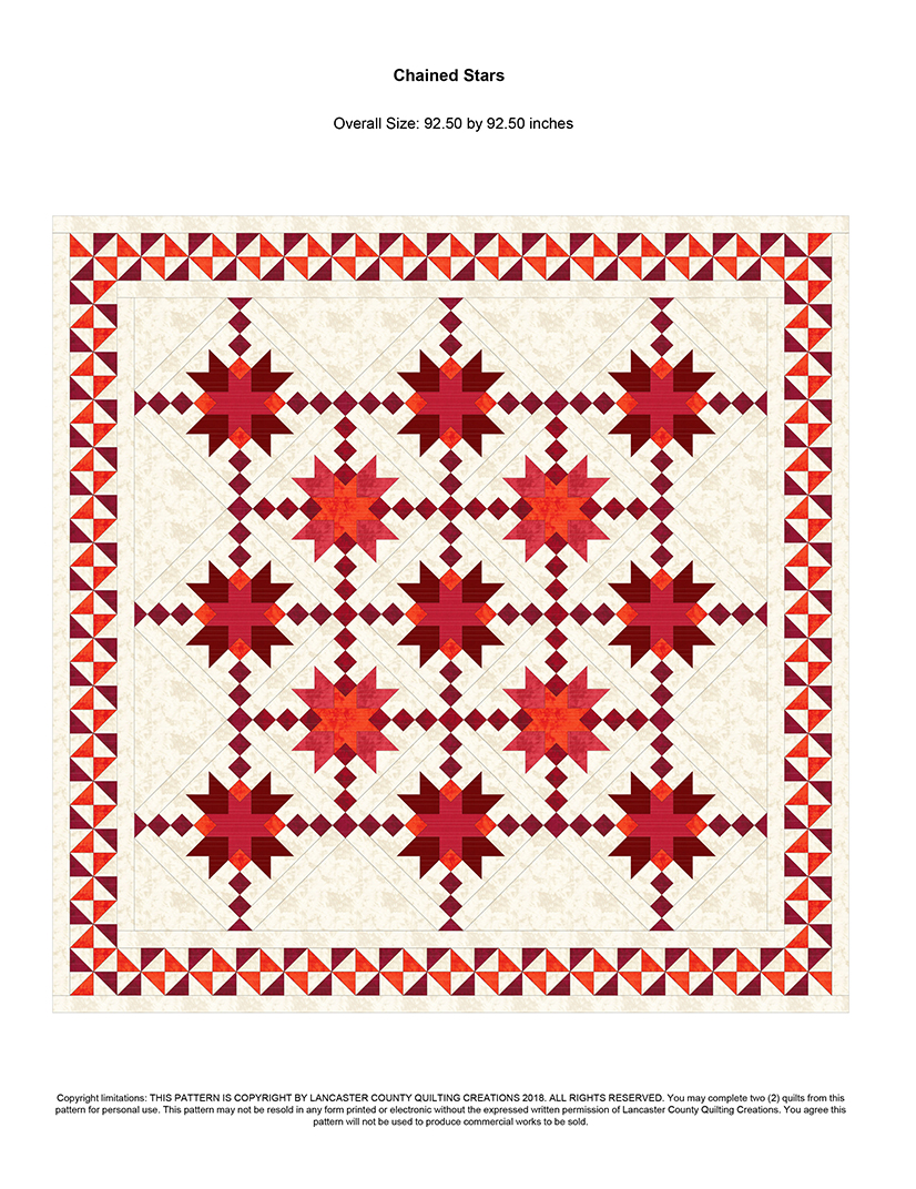 This item is a Digital Download of the quilt photos, yardage and patch count requirements ( by brand when possible, the actual patch size templates, and very basic instructions for changing the size of this single quilt pattern to accommodate all bed sizes from Twin – King sizes. You can also create just a few of the blocks for a simple couch throw, table centerpiece, or even a crib quilt.