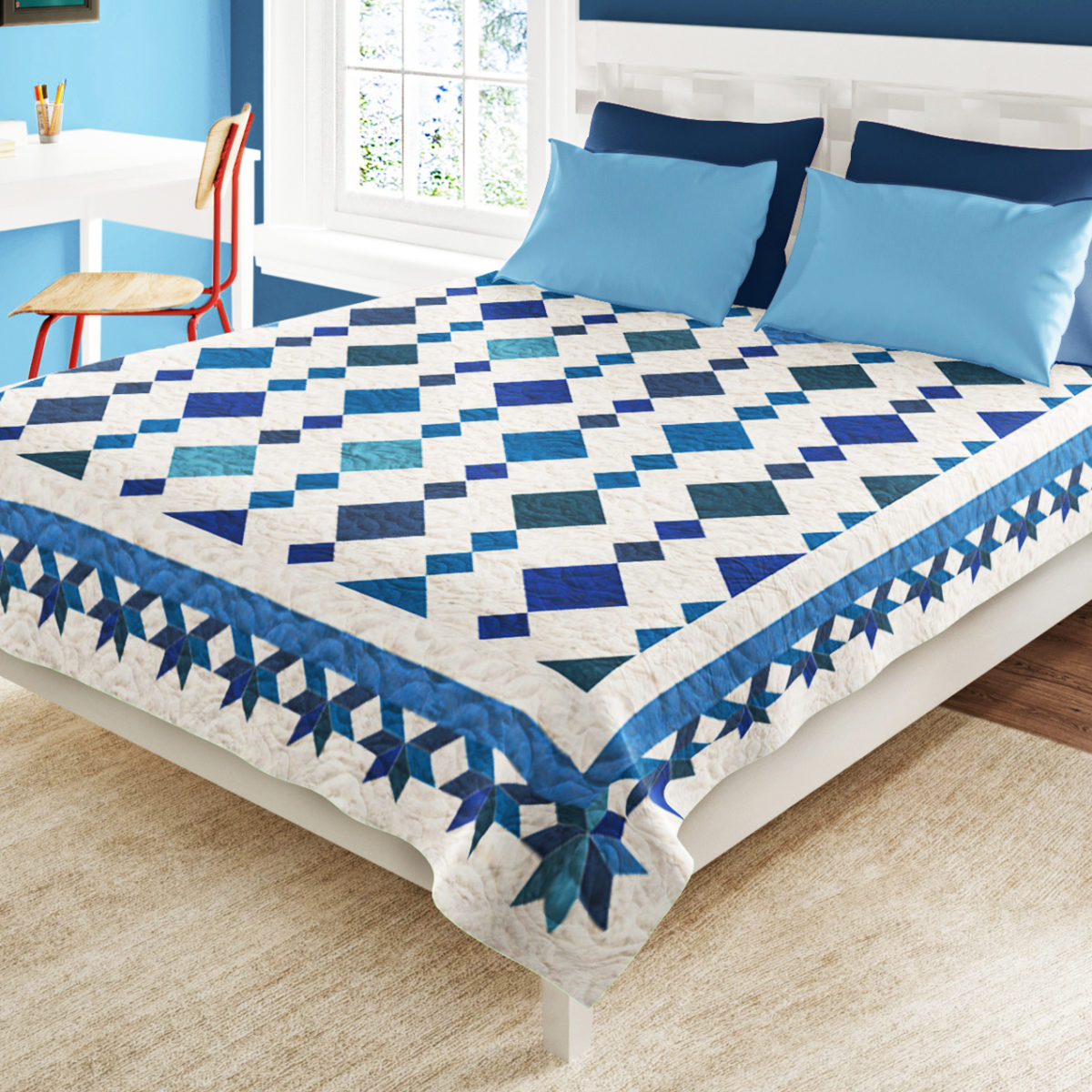 We know you will have fun sewing this simple quilting pattern. It is striking, and is very easy to create by even a novice patchwork enthusiast.