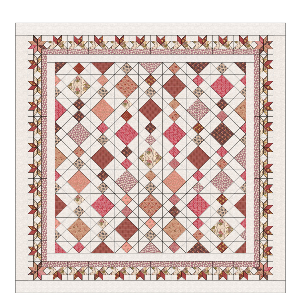 Curtain of Diamonds Pattern Patchwork is a Digital Download of the quilt photos, yardage & patch count requirements with basic instructions.