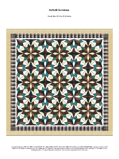 Included with each pattern set are photos ( multiples often) of quilts we have actually made using these patterns. The pattern set also includes layout instructions, Fabric purchase requirements and patch count, True to size templates, and more.