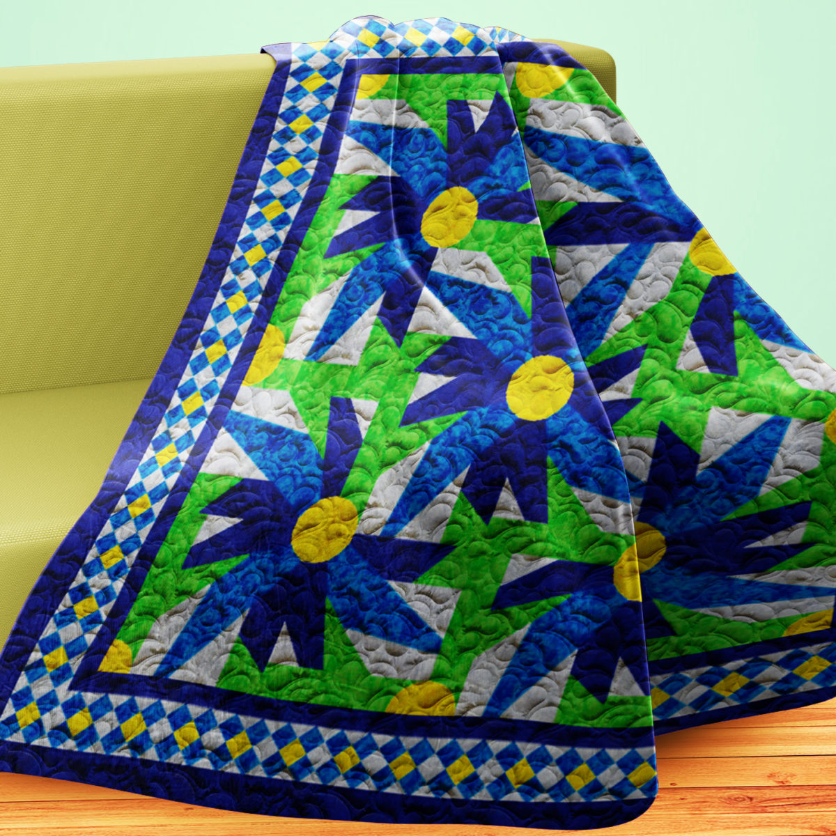 This is a Digital Download of the quilt photos, yardage and patch count requirements ( by brand when possible, the actual patch size templates, and very basic instructions for changing the size of this single quilt pattern to accommodate all bed sizes from Twin – King sizes. You can also create just a few of the blocks for a simple couch throw, table centerpiece, or even a crib quilt.