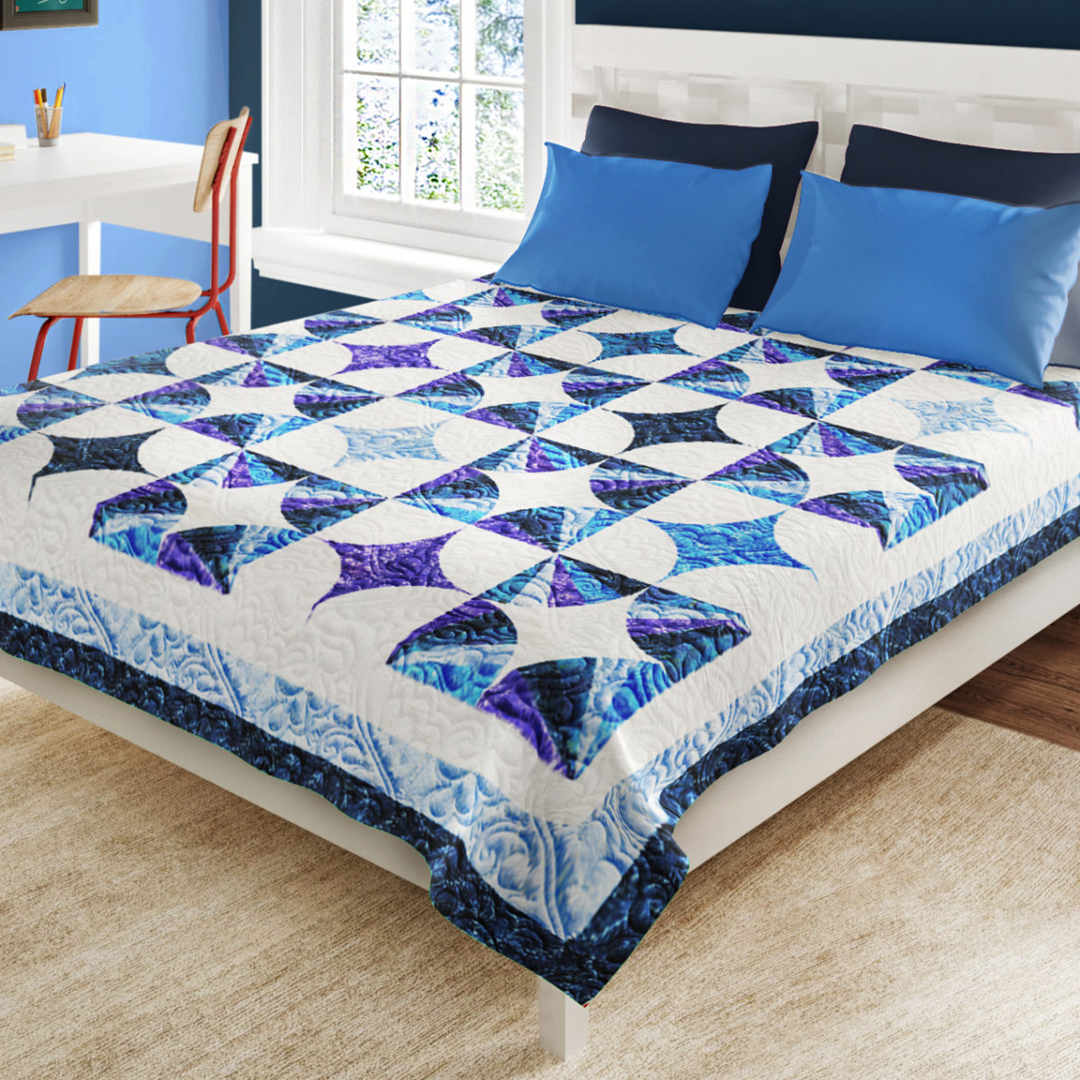 This item is a Digital Download of the quilt photos, yardage and patch count requirements ( by brand when possible, the actual patch size templates, and very basic instructions for changing the size of this single quilt pattern to accommodate all bed sizes from Twin – King sizes. You can also create just a few of the blocks for a simple couch throw, table centerpiece, or even a crib quilt.