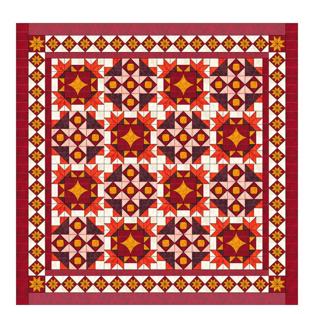 We know you will have fun sewing this simple quilting pattern. It is striking, and is very easy to create by even a novice patchwork enthusiast.